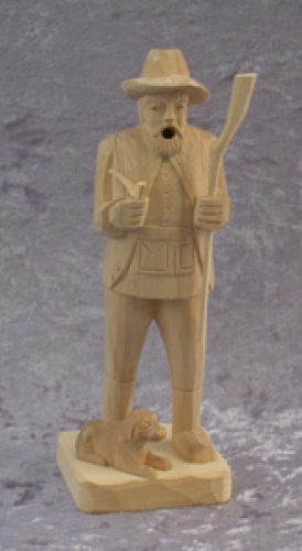 This particular design likely represents a hunter or woodsman, complete with his loyal dog companion.