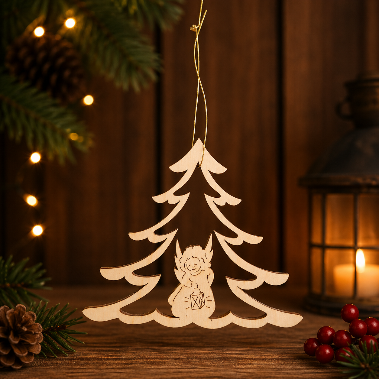 Crafted from natural wood, the ornaments feature delicate cut-out details and soft, timeless tones that highlight their handcrafted character. Their lightweight design makes them easy to hang, while their balanced size ensures they sit perfectly on the branches—neither too large nor too small, but just right for a harmonious tree.
