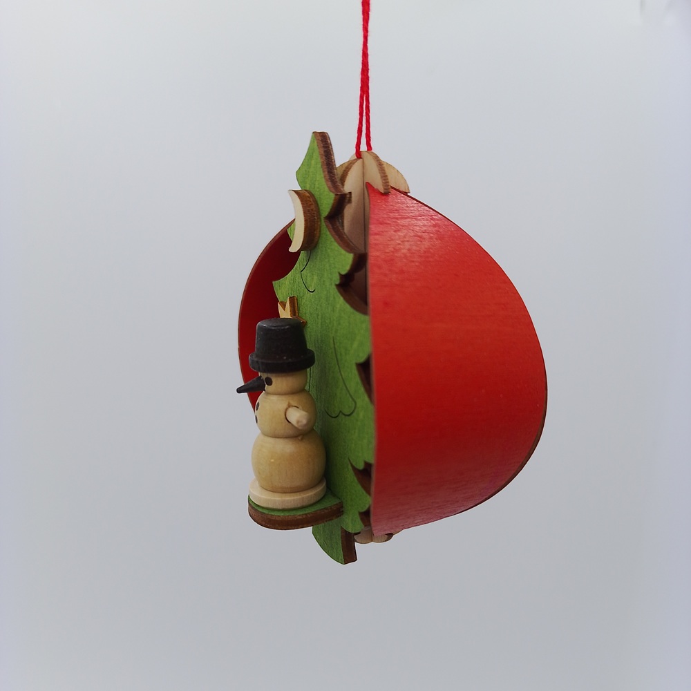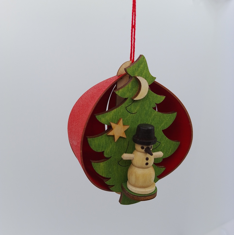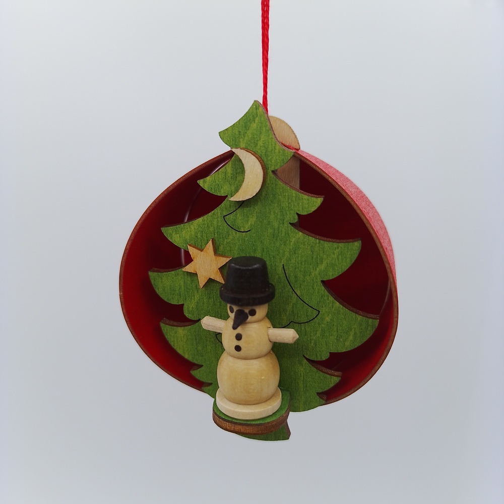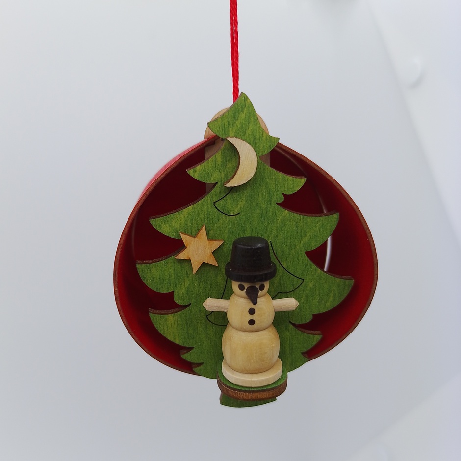 Wooden ornament featuring a snowman inside a festive tree scene. A warm and traditional addition to your Christmas décor.
